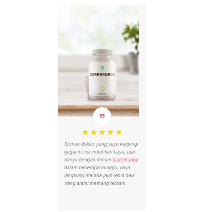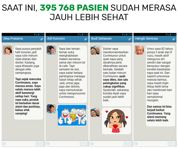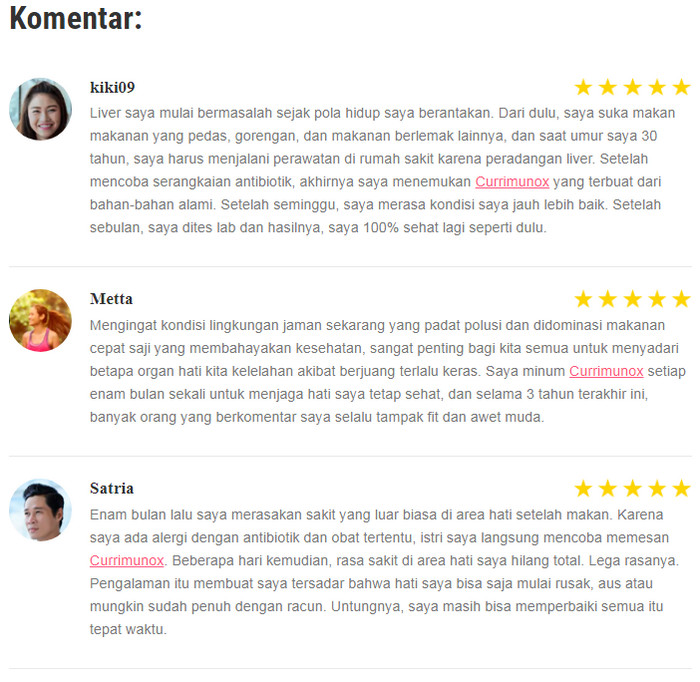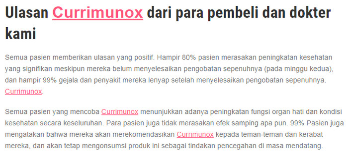 Banyak ahli merekomendasikan agar pasien mereka memesan dan meminumnya secara teratur selama kursus, karena komposisi asli kapsul mengatasi setiap tahapan proses patologis, tidak membuat ketagihan, tidak ada sindrom penarikan setelah penggunaannya. Namun, tidak hanya para ahli dokter berbicara positif tentang Currimunox, tetapi juga pasien yang sudah mencoba Currimunox. Dan itu tidak cukup. Di forum Anda akan menemukan sejumlah besar kesaksian dan komentar pemakai.